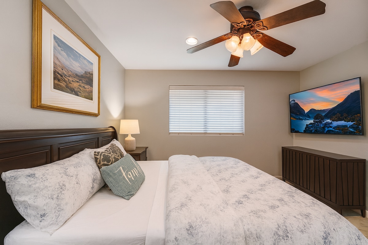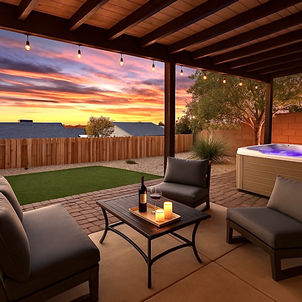 Lake Havasu CityEscape to this stylish and serene 3BR retreat with stunning lake and mountain views. Two elegant master suites offer private bath access, plus a cozy third bedroom for added comfort. Fully renovated and thoughtfully stocked for a seamless stay. Enjoy a private gated yard with a custom patio and romantic hot tub—perfect for relaxing under the stars. A luxurious getaway designed for comfort and connection.